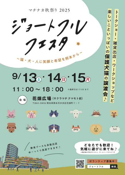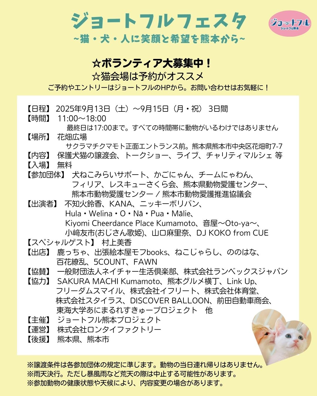 「ジョートフルフェスタ ~猫・犬・人に笑顔と希望を熊本から~」を開催します。